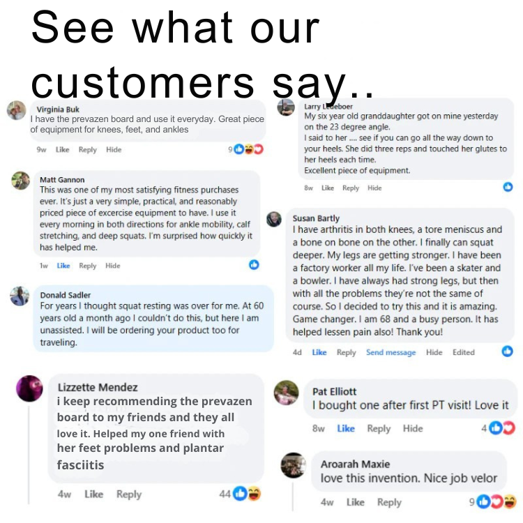 Tom W. – Dublin, Ireland April 2025Verified Buyer“Helped my ankle recovery”After a minor ankle injury, I used the PrevaZen Board for mobility exercises. It’s been a game changer for rebuilding strength and balance. Just wish it came with a carry bag.